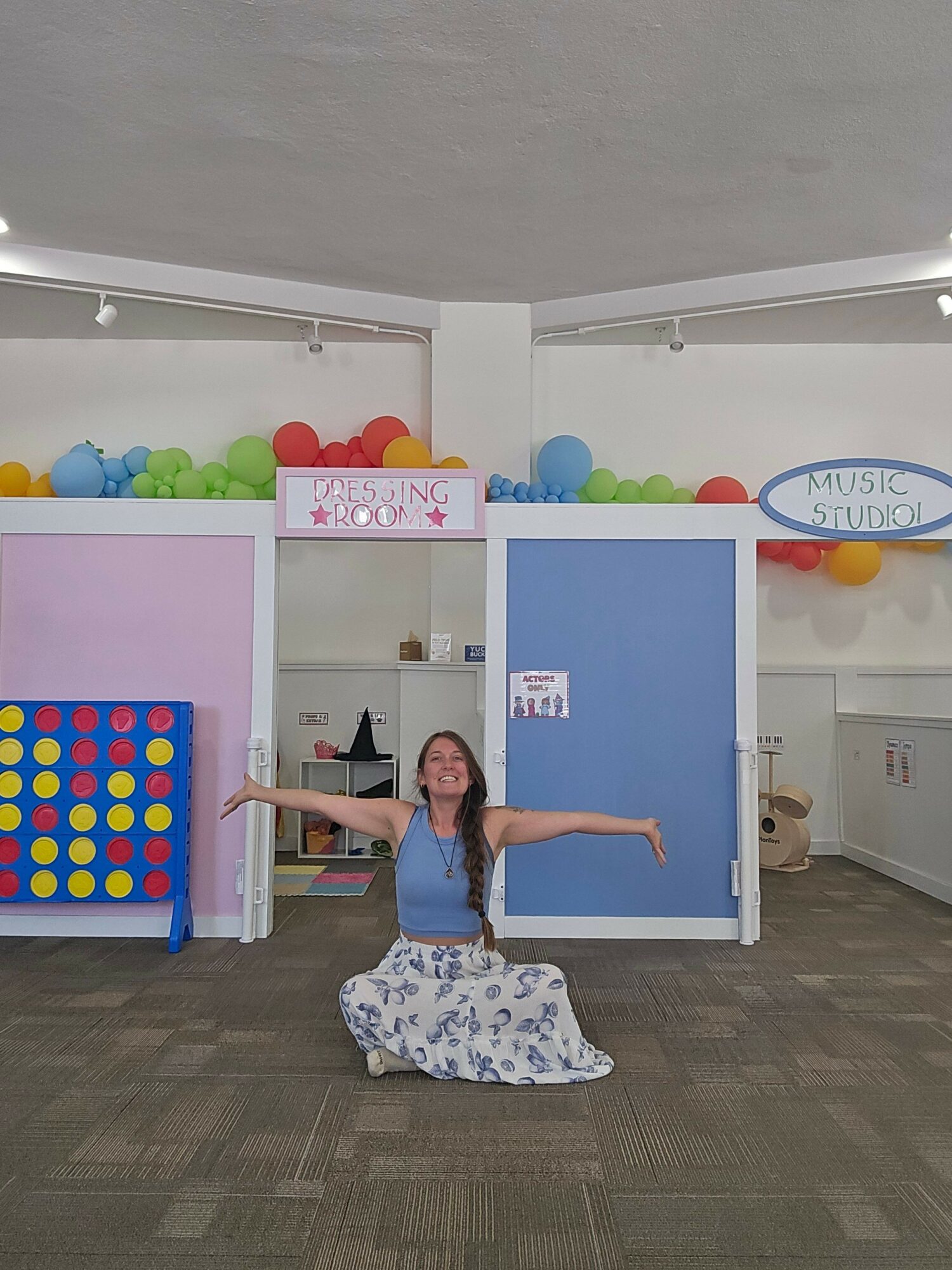 Now at 31, in my second year of a Social Work degree, my family and I have recently relocated from Indianapolis to Muskegon. As if divinely arranged, I was approached to lead children in creative endeavors at PLAY Muskegon. This felt sacred because it was everything I had ever longed for. Creativity through dance, dramatics, and play has always held a deep place in my heart. For a year before this opportunity arose, I envisioned myself making a living singing, dancing, and playing with children. Whenever I focused on that intention, my body lit up with butterflies. That feeling affirmed that working with little ones is my calling. Witnessing their elation is a gift. Children feel safe with me, and together we create magic.