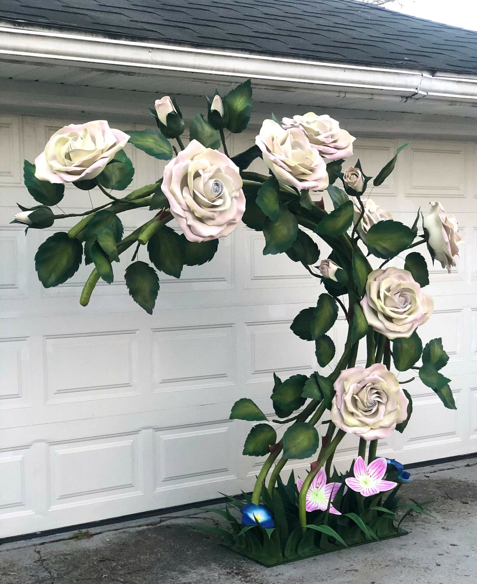I’m proud of every piece I create but the most notable ones for me are the 14-foot giant vine structure and the 7-foot-tall giant bouquet. The giant bouquet has my heart. It was the first piece I ever attempted to create as an artist, and process of building the giant vine structure challenged me to create without limits.
