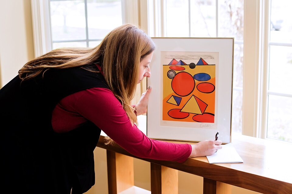 She enrolled in class, she studied for months, she organized. Everything goes into red folders with stickers and QR codes and notes – exactly the kind of thing most people don’t do, but anyone who owns anything of value should do. Understanding the value of a work of art is important for insurance (“I had a painting worth $40,000 but no proof” is not the sort of thing you want to tell your agent after a fire), for inheritance or for resale purposes.