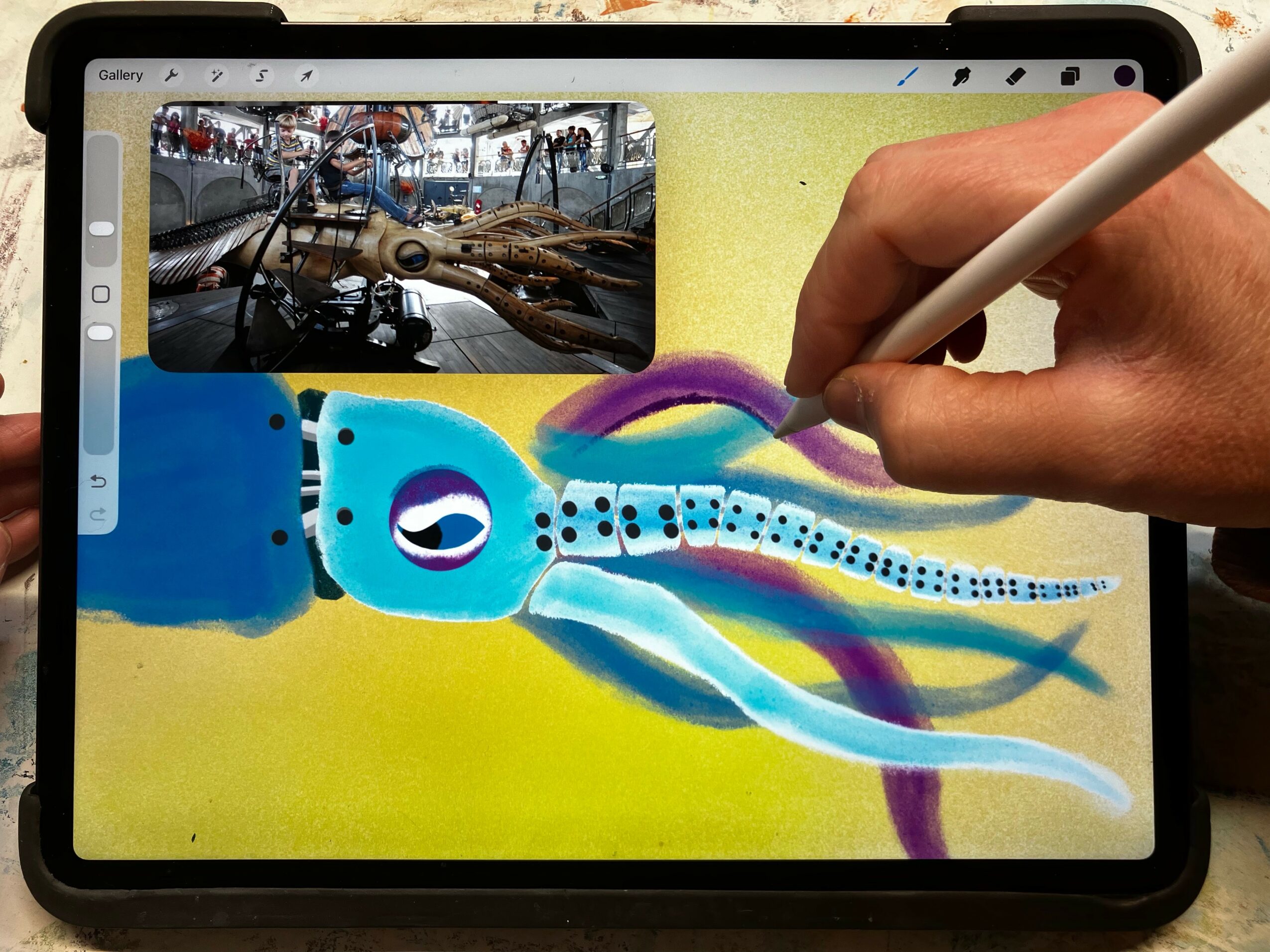 My partner and I got very sick in March of 2020, and spent a scary year first unable to access the care we needed and then being told by doctors we couldn’t possibly “still” be sick from Covid. That year I was pretty much disabled. By the next year, though, my lung capacity had improved enough for me to talk through a couple classes a week, so when a friend reached out and told me that a mutual friend was having a lot of success teaching online, I decided to check it out! (Her website is here, if you could link to her: https://www.amaliaexplores.com/ ) Amalia helped me get started with online classes, and we even collaborated on an art class that would match her science and animal class. Within a couple of years, my schedule was packed with as many classes as I could teach, while still giving me enough time to keep a studio practice and not be in constant inflammation flare-up.