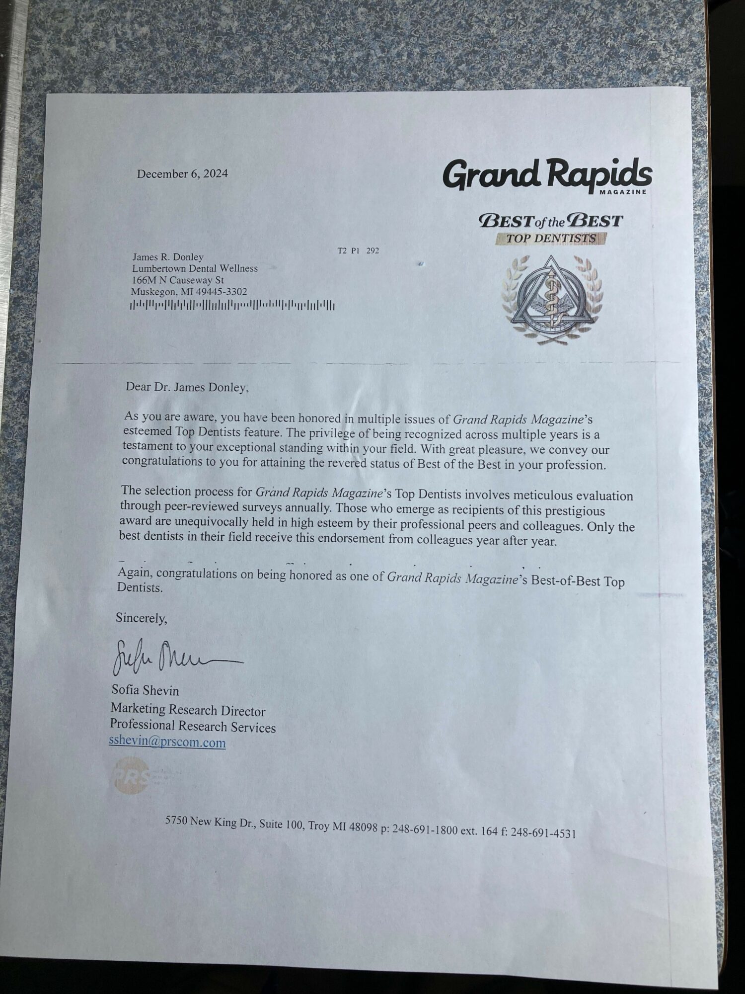 Having a philosophy of being proactive lead to a clash with Delta Dental insurance. They said I had to not offer a higher level of care for periodontal disease or provide the extra care at no charge. This was not acceptable and lead to my resigning from being a premier dental provider with Delta Dental and never signing a contract to participate with any other insurance although we do bill almost all insurance companies. This stance allowed me to continue to maintain a higher quality of care. According to Grand Rapids magazine surveys, this was recognized by other West Michigan dentists and for multiple years I was voted among the best in West Michigan. In 2024, the magazine declared I was the Best Of the Best dentists.