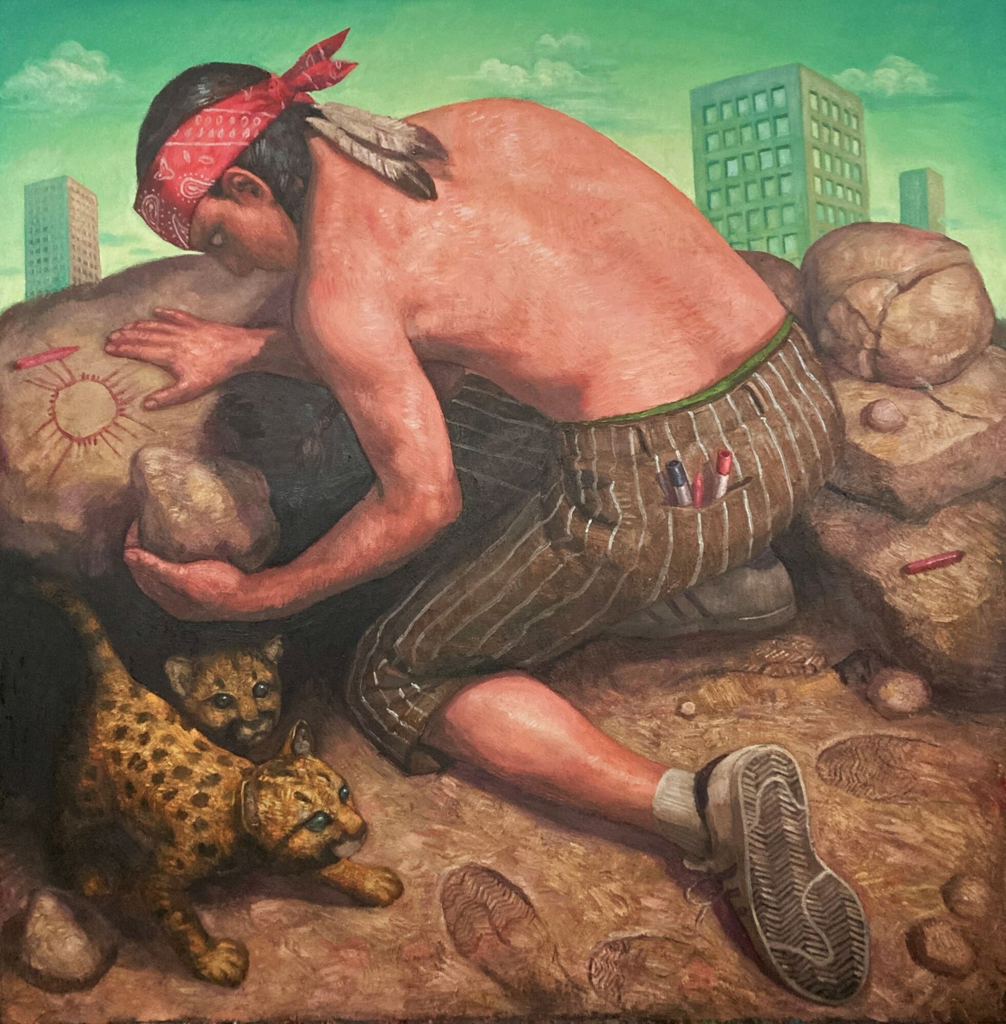 Oils allow me to work slowly and meditatively, or quickly when I want to make a statement in a hurry. But mostly, besides making an image, the act of painting has taken up a big part of how and why I believe what I believe. I paint like an anti-artist. The whole point for me is the act of making, the picture is only a footprint.