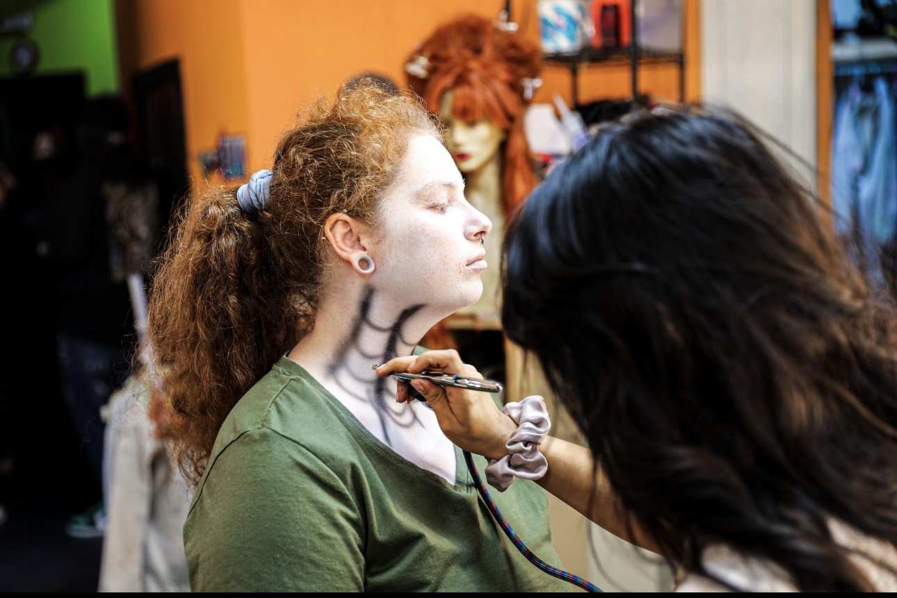 I always love working with new faces too, especially during haunt season. Every single night, I never know who will sit in my chair and what room they will be in, so it’s always on the spot coming up with an idea. I definitely went out of my comfort zone this past 2024 season, but i’ve fallen in love with airbrushing after doing it at the haunt. Sanitation is also something I am super big on, it’s the absolute key that comes with being a makeup artist. Making sure nobody has any allergies is also another important step that comes with being a makeup artist.