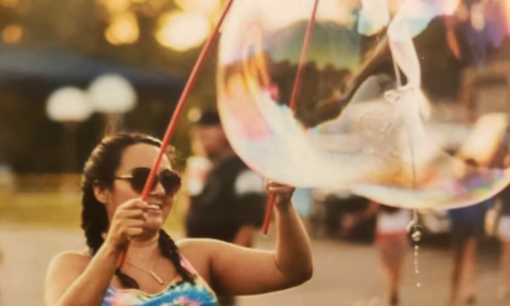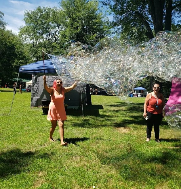 A huge inspiration to Brianna, aka Bubbles or BubbleBri, are her parents John & Yolanda; she comes from a family full of artists, from painters to writers to musicians. Her mother is the reason BubblesRFun came to be; after seeing giant bubbles at a garden party, Yolanda went home & began working on the design of the mix and wand. Enjoying the wands at Ovidstock, the families music festival, Brianna soon found her passion for bubbles, and in 2017 BubblesRFun was established. Throughout the years, the wand design has been fine-tuned and expanded on, always looking for new and creative ways to play with the bubbles. Today, BubblesRFun offers various styles and designs for bubble lovers of all ages.