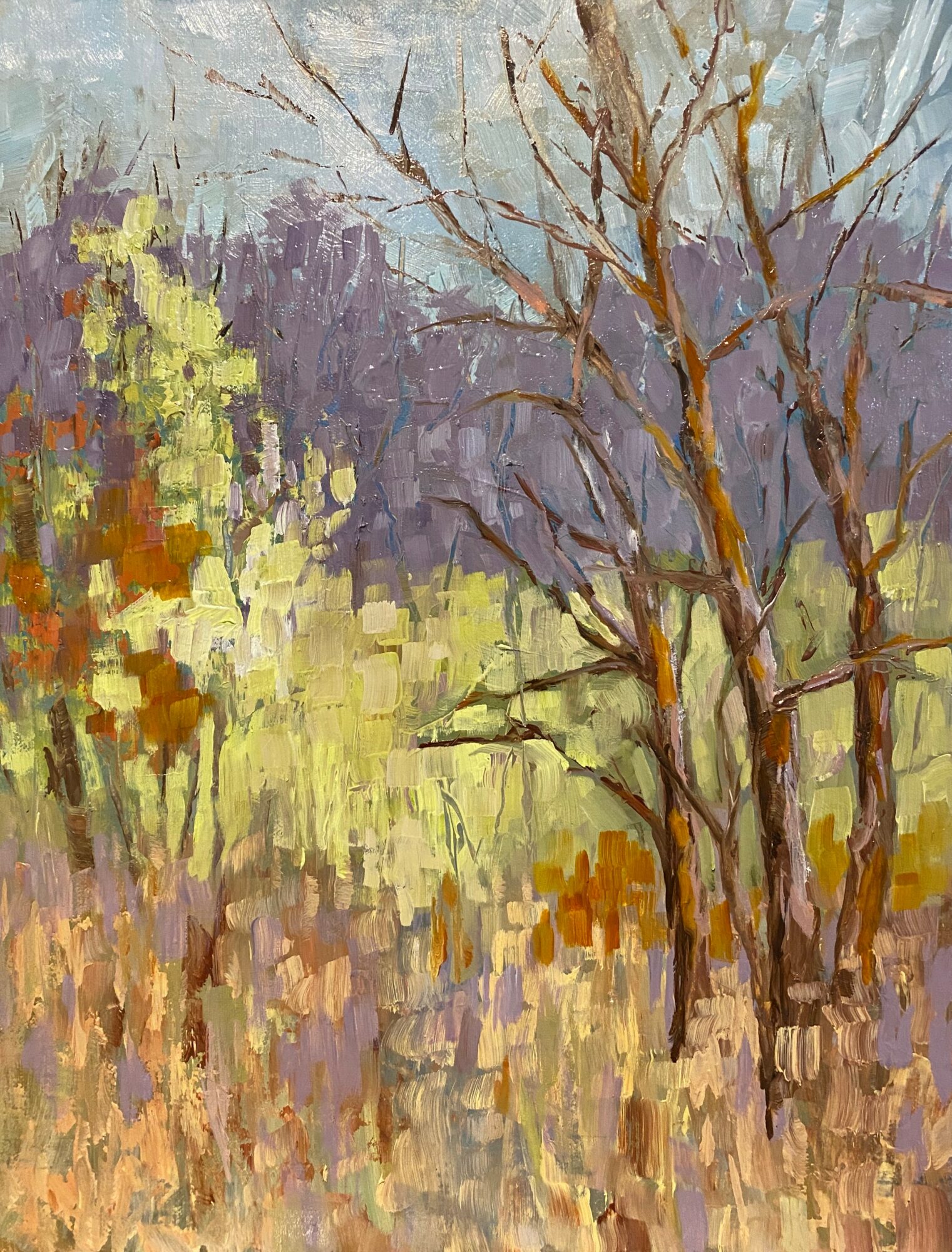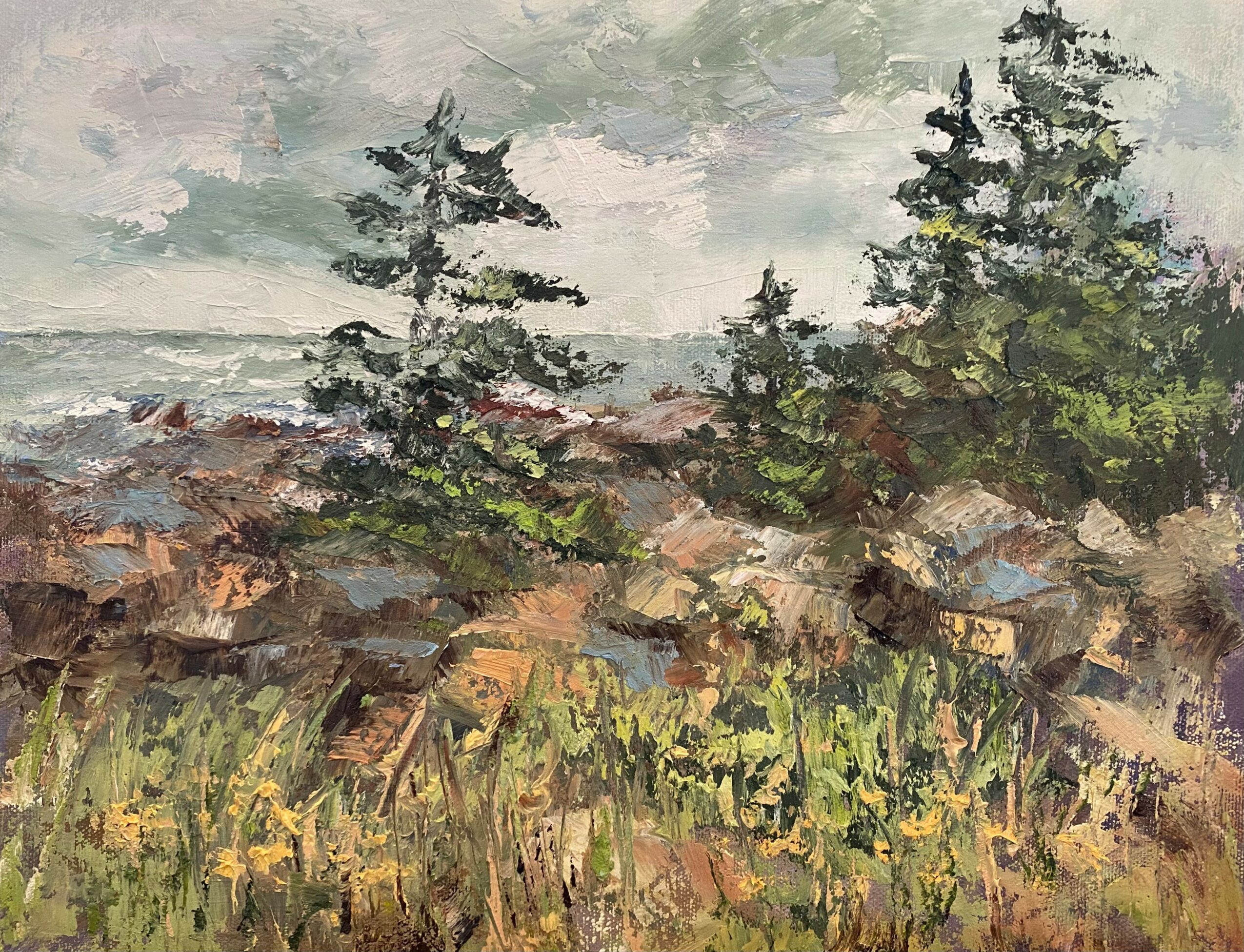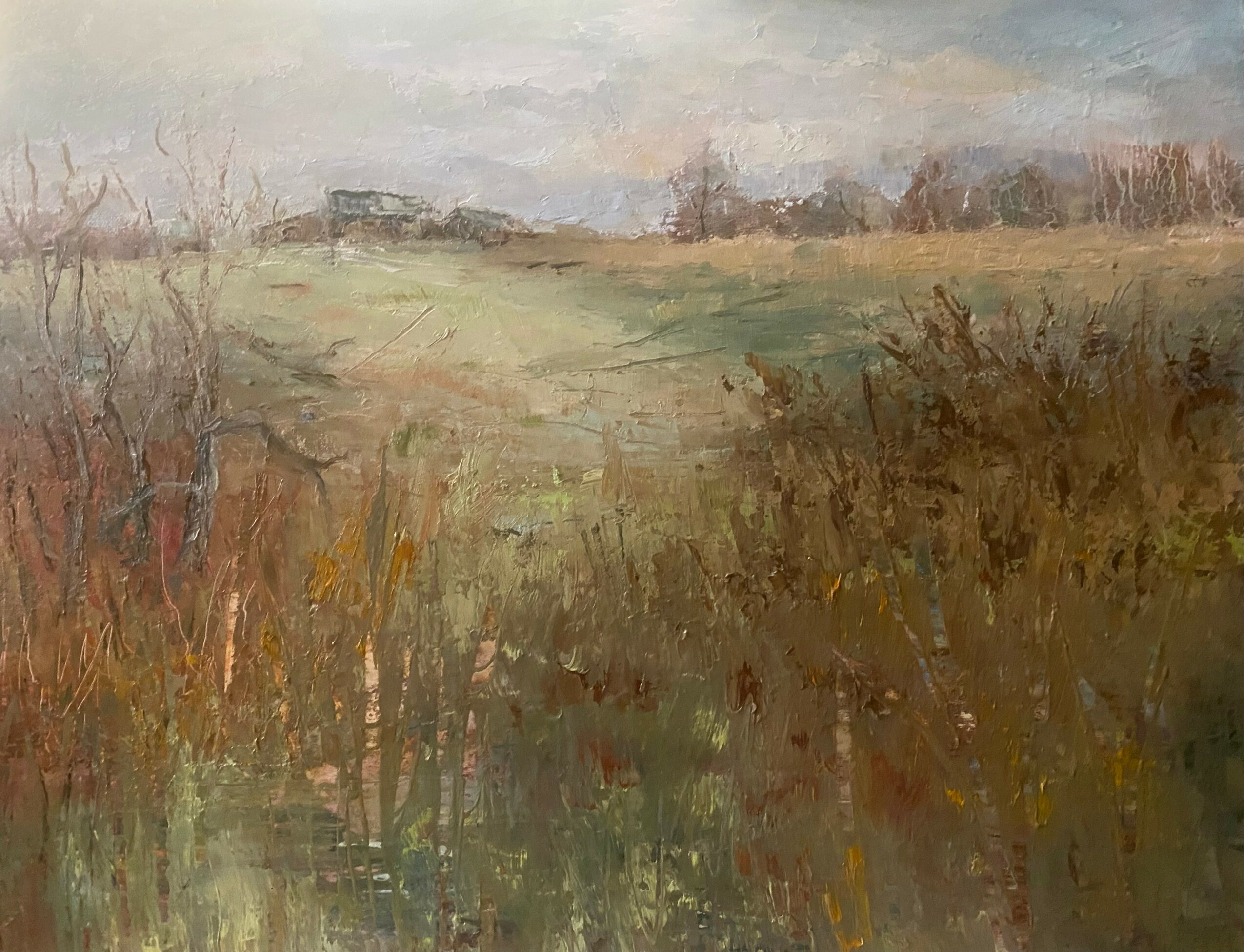 Landscapes, the natural beauty of the ordinary that is often overlooked in busy lives, calls to me. Also, the small, intimate still life paintings are favorites. Cold wax and oil on copper substrate is a rather new challenge and I love the spontaneity that comes with it.