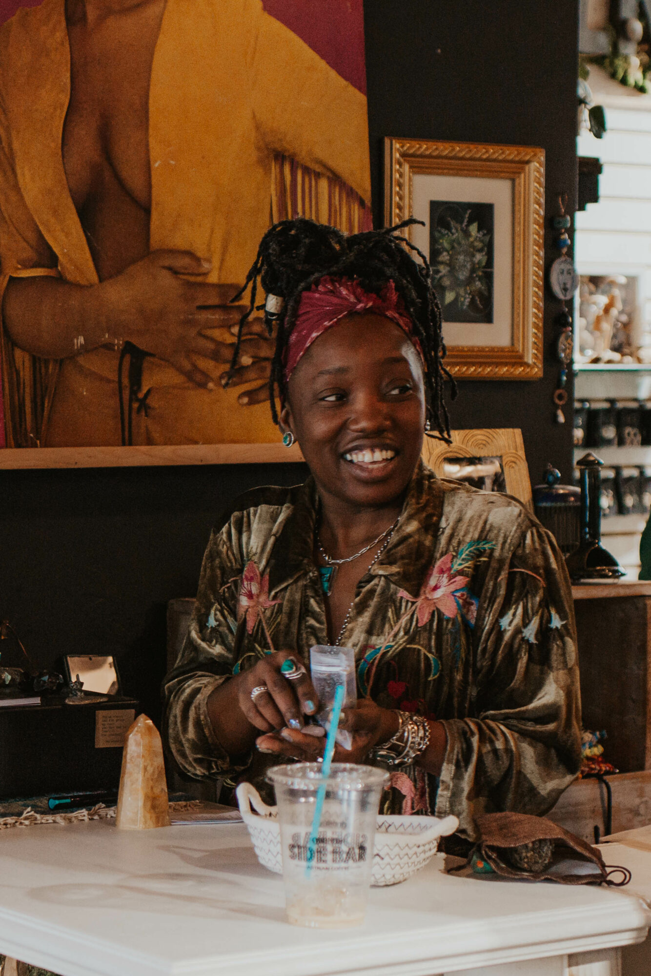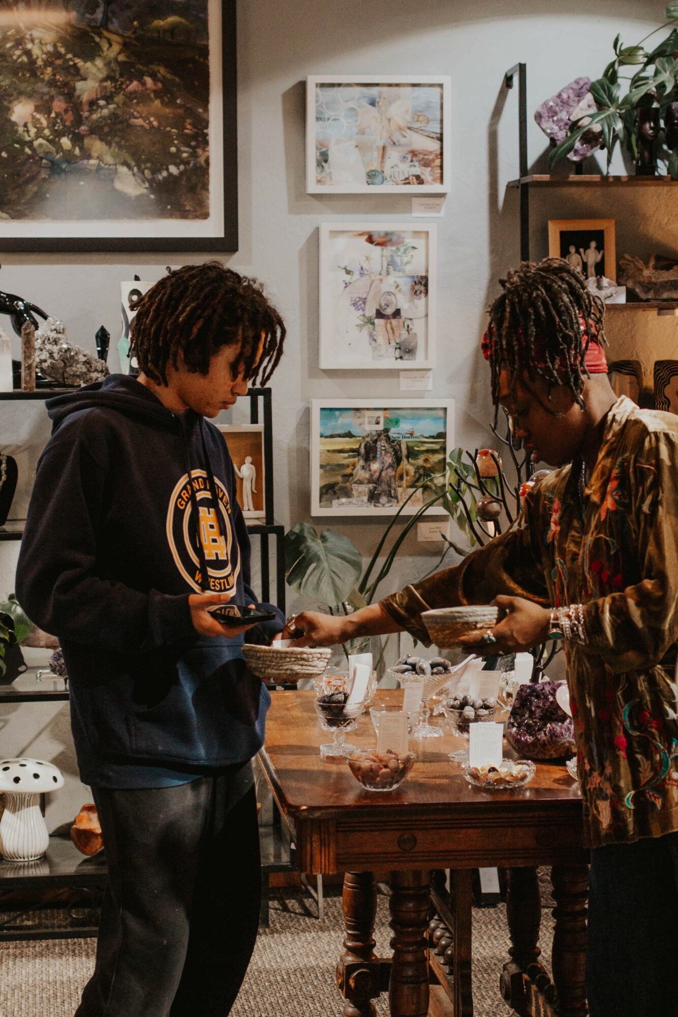 I’m especially known for creating an environment that feels welcoming and layered, where people can slow down and explore at their own pace. My background in behavioral studies, yoga therapy, and design naturally influences how the shop is arranged; the space is meant to be immersive rather than transactional. Many visitors tell me they feel a sense of calm or connection the moment they walk in, and that’s something I’m incredibly proud of.