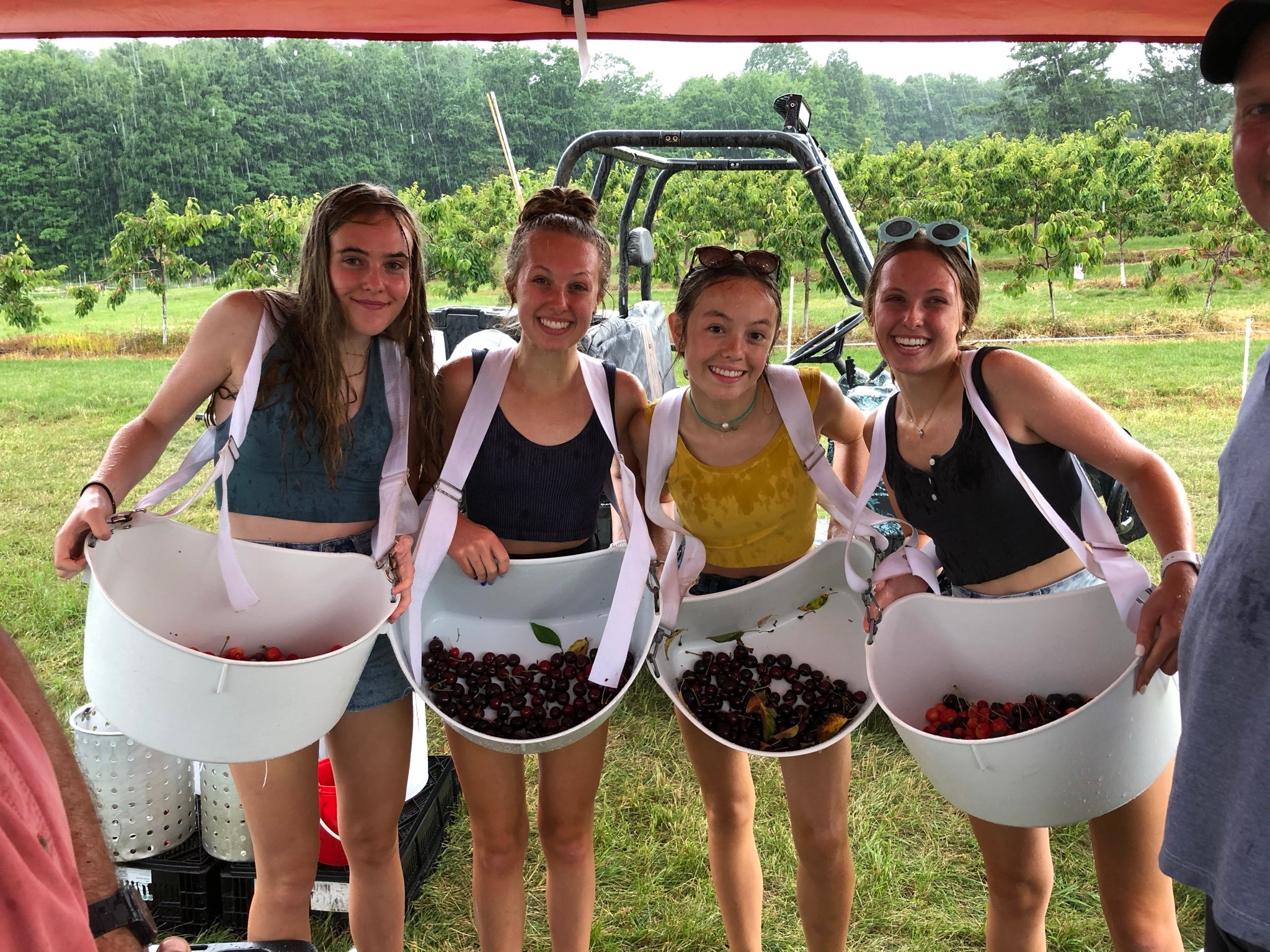 After our three kids sprang the nest, we sold our home in Indy and moved here permanently during the 2016 cherry harvest. We started harvesting for the fresh produce wholesale market, bringing in crews to hand-pick starting at 6 am each day. After a few years, we did figure out that we would never make mopney with that model, and pivoted to a u-pick model ~ jsut as COVID hit. We were blessed in that families could still come out and upick cherries during COVID, and have stuck with that model since!