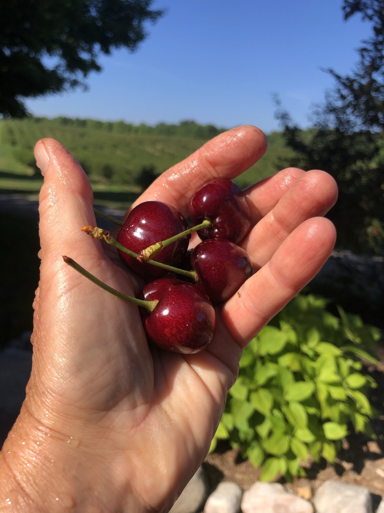 Watching a skeptical potential new cherry lover eating a fresh, sweet cherry they picked off a tree as the juice drips down their chin and then spitting the pit as far as it can go, and exclaiming, “Wow, you are right, I do like that! So that is what a fresh cherry should taste like?!