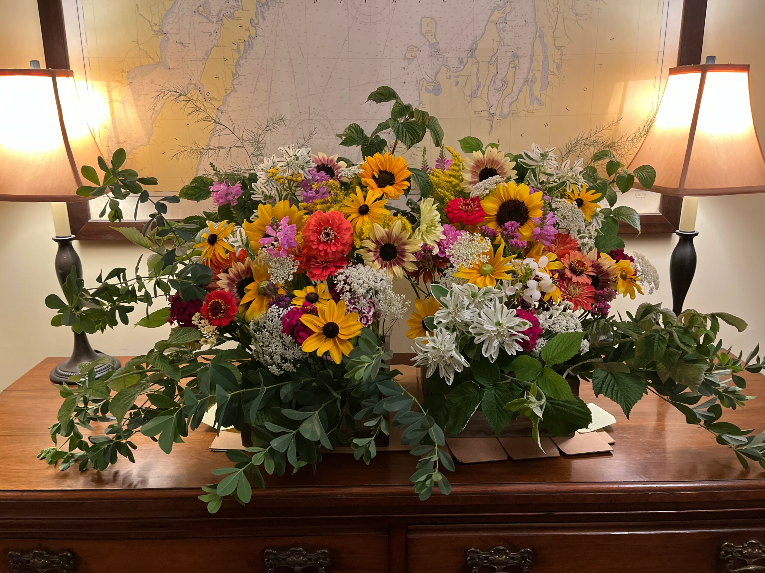 In the spring of 2017, our daughter announced her engagement, and I naively offered to grow the flowers for the wedding, even though I had only grown for my own pleasure to that point. Bu the September wedding, we had an over-abundance of flowers, and I was asked why I was not selling them as well…we are now growing and selling 1/2 acres’ worth, selling to two grocery stores, at two local Farmer’s markets, and for special events.