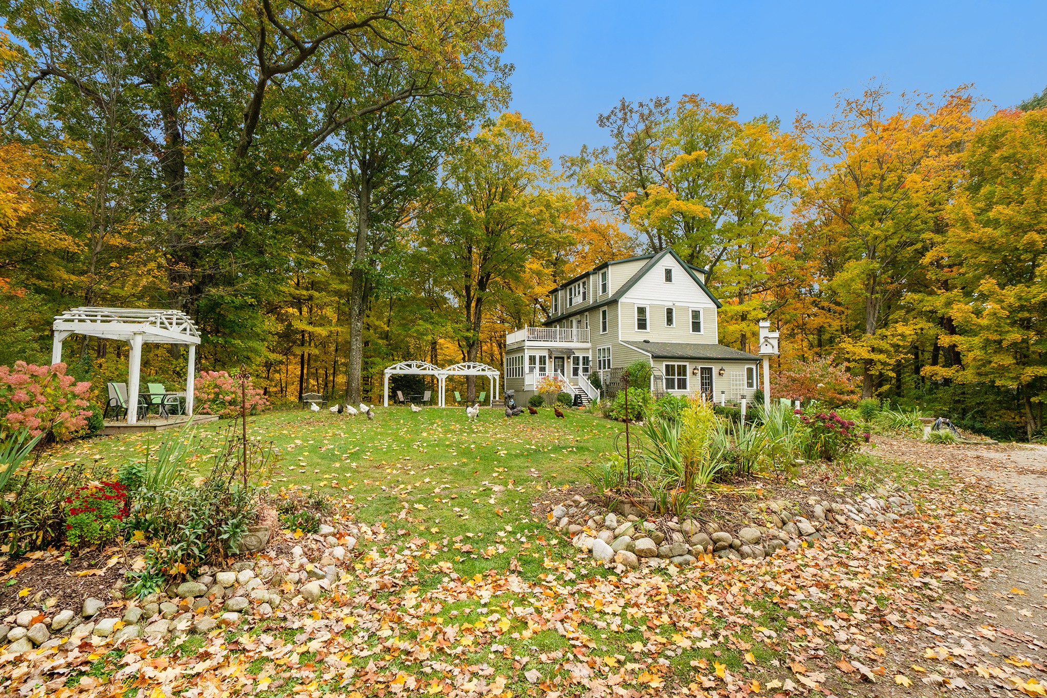 The Vintage Inn at Veritas Estate Winery is a 5 bedroom bed and breakfast with boutique accommodations and farm-to-table dining in a renovated 1904 farmhouse. The 5-acre estate surrounding the Inn is home to Veritas Estate Winery, extensive flower and vegetable gardens, a small orchard, and seating areas for guests to enjoy. Our goal is to share the bounty of Michigan food and wine with our guests by growing, producing, and foraging as much of the food and wine that we can. To that end we grow fruit and vegetables, raise chickens for eggs, and produce 600+ cases of wine per year. Overnight guests or visitors to the winery tasting room get to see where the food and wine come from and “meet the makers” as well.