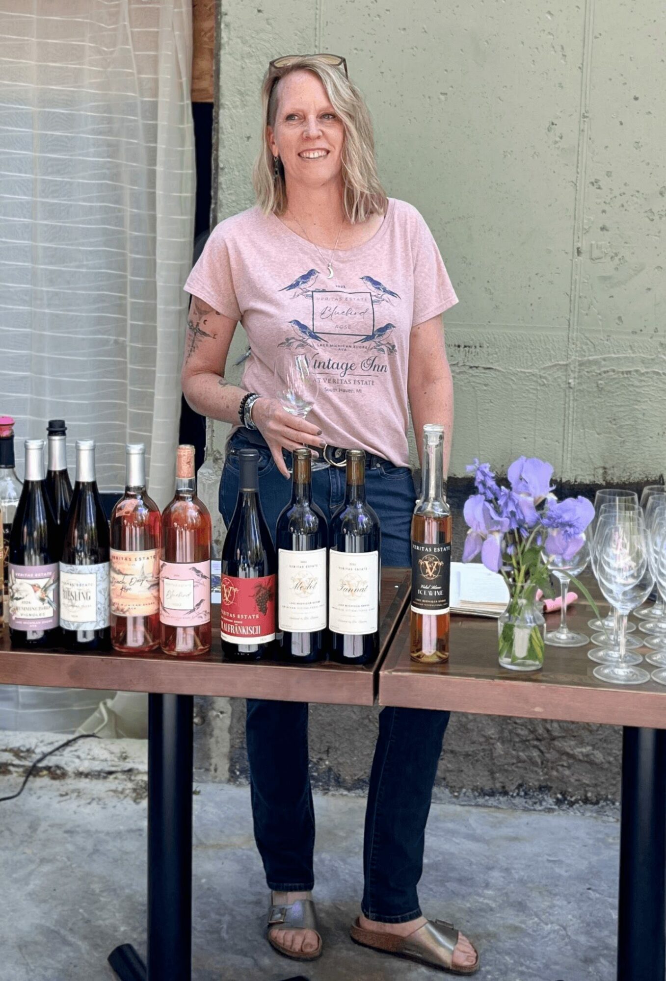 What sets us apart is part of our name – Veritas – which is the Latin word for truth. Our name is a statement of our commitment to staying true to our values. True to our passion for local products. True to our belief that we should be environmental stewards and responsible community members. This is reflected in the fact that Chef Tim grows and makes from scratch the ingredients for breakfasts and other special events. Our wines also show our commitment to local products and to our true selves. Sherry creates wines that reflect the beauty of our unique growing environment along the shores of Lake Michigan. Our winemaking practices allow the flavors of the diverse grape varieties we use to shine through. From unusual varieties such as Gewurztraminer, Blaufrankisch, and Tannat to well known grapes such as Pinot Gris and Riesling, we make wines that highlight each one without the addition of extra sweetness. We purchase our grapes from small local growers that meet our sustainability and quality standards.