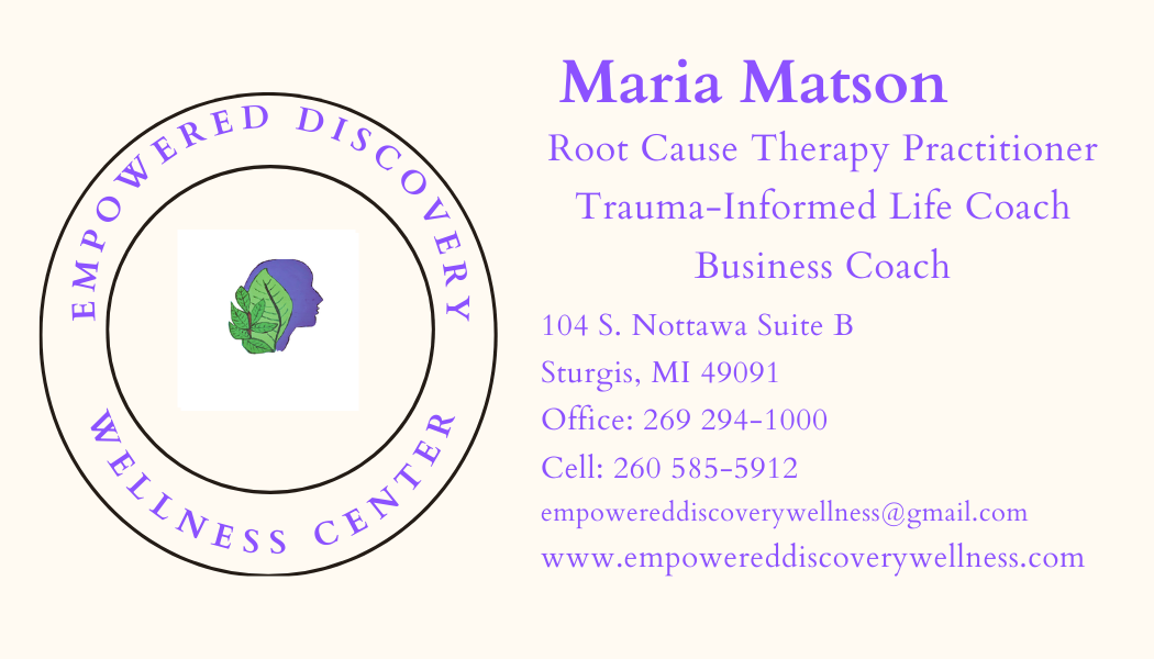 I am also a business coach and recently launched a program that encompasses the Trauma-Informed Life Coaching, Root Cause Therapy treatments along with Business Coaching. This helps people that are stuck in their lives and want to move forward with business success. My clients learn how to maintain emotional regulation during stressful situation, setting goals and accountability to move the goals along, create an aligned marketing strategy to help find their ideal clients. Insight coaching to help build confidence and allow the client to discover their new thought processes.