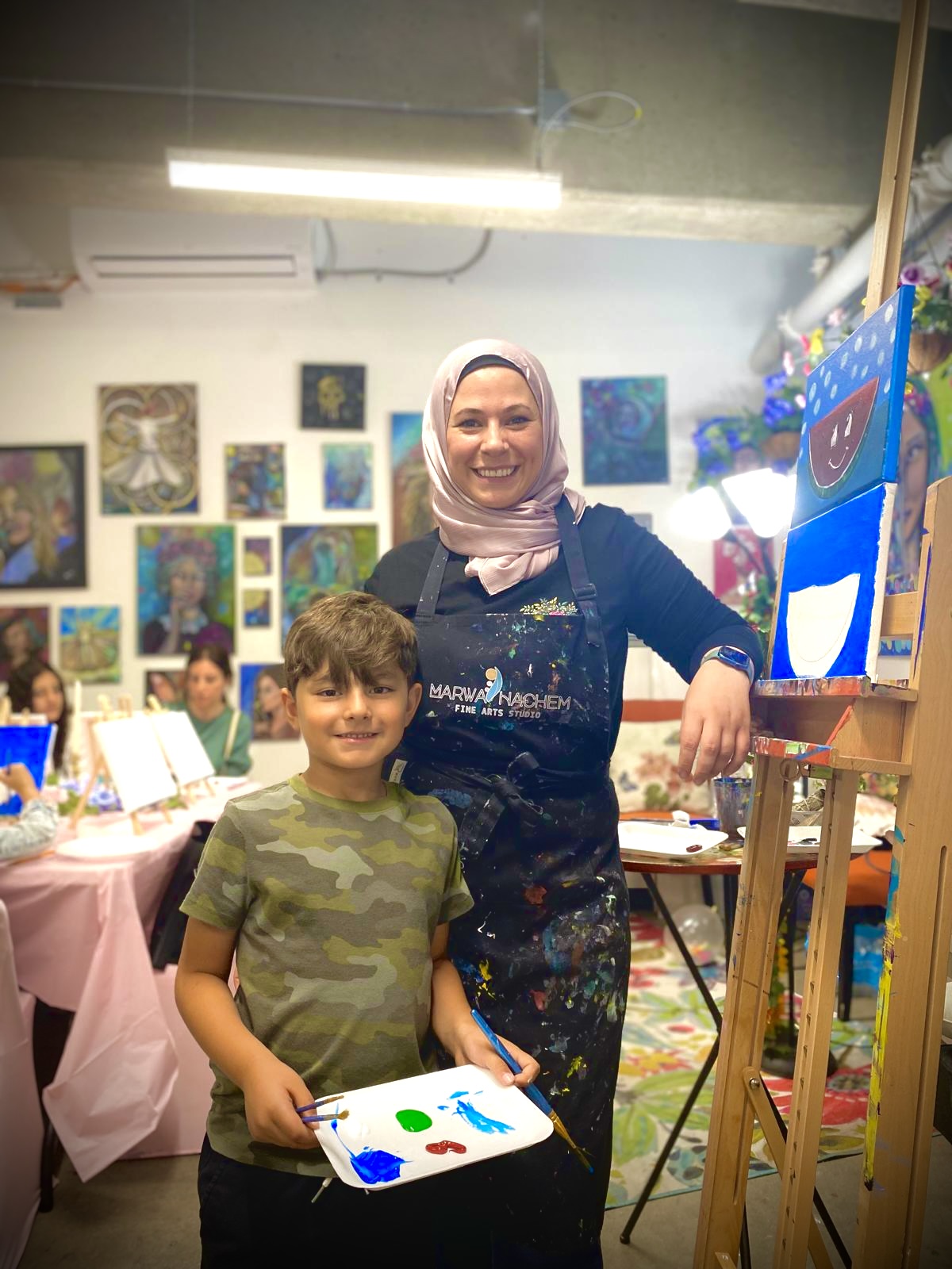My business, Marwa Hachem Fine Arts Studio, is more than just a space for creating art—it’s a sanctuary for emotional expression, self-discovery, and healing through creativity. I specialize in offering a variety of creative services that cater to both children and adults. From therapeutic art workshops to Mommy and Me classes, Kids Art Club, and private paint parties, each experience is designed to inspire joy, connection, and personal growth.