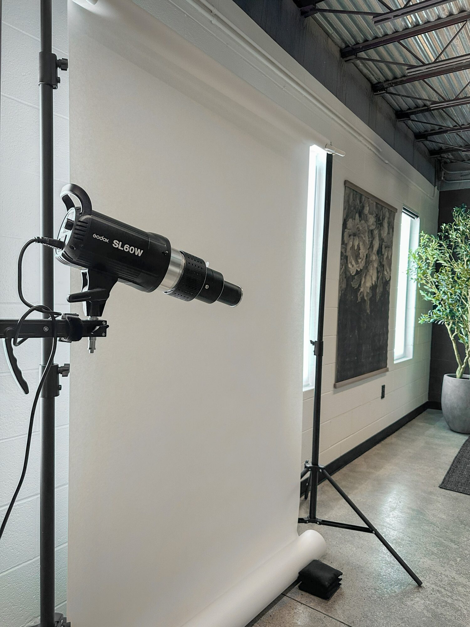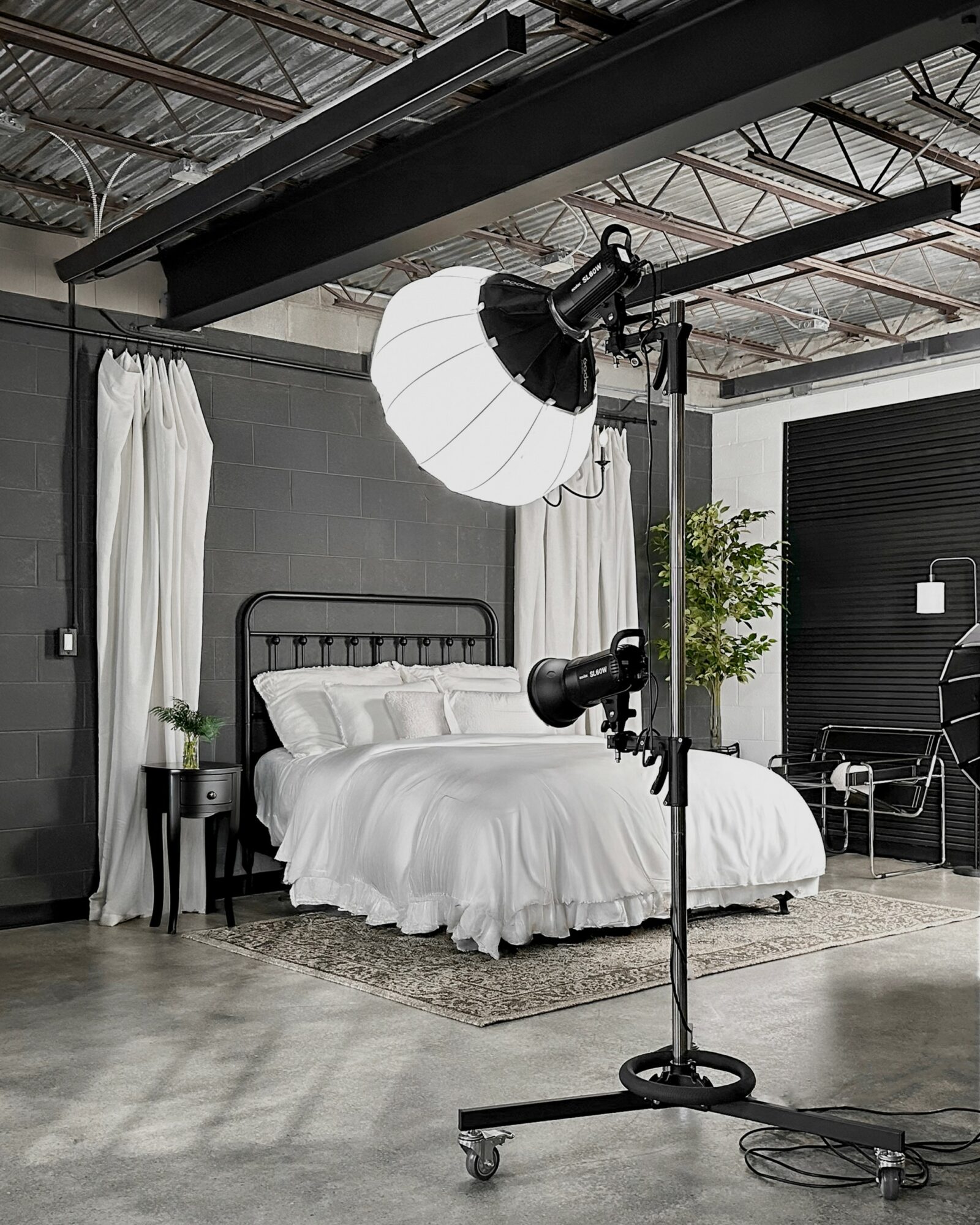 - Rental includes access to industrial-modern studio environments, natural light, and professional lighting equipment