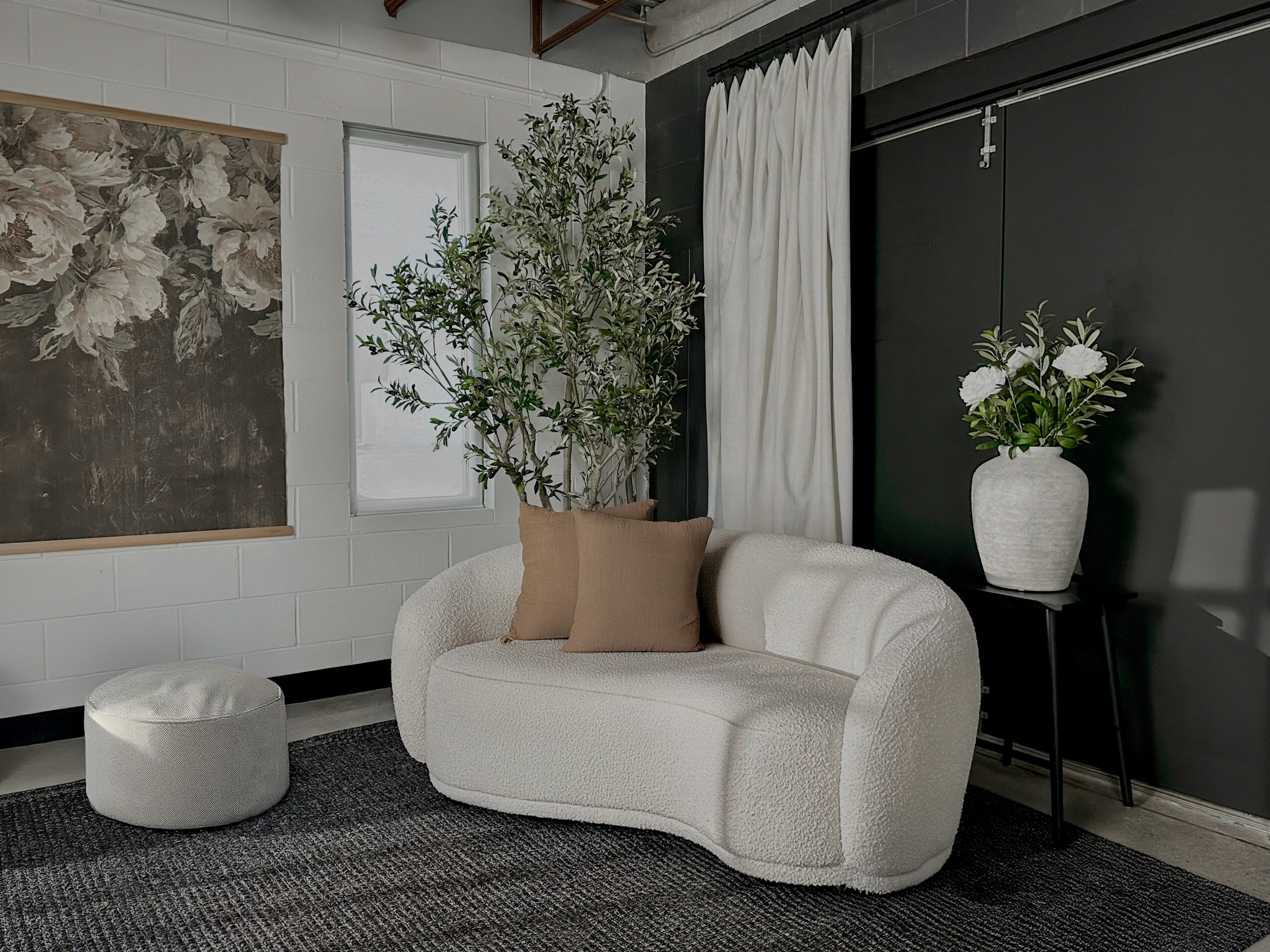I think what sets d14 Studio apart is the intention behind the design. Every element of the space was carefully considered — from the charcoal textural block wall to the natural light and curated styling elements — so that photographers and creative teams have a space that already feels visually strong before they even start shooting.