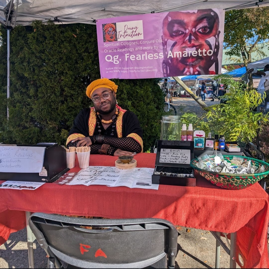 I started realizing and engaging my intuition more. Music was my first tool, found completely on accident. After live streaming a readings for myself using music, many others started wanting readings. Eventually I got into working with cards and charms and other tools, and even creating my own Oracle Decks and tools for readings. I formed my business, Quing Intuition in 2020. Mainly as a place for readings, but eventually selling the spiritual oils and colognes that I learned to make for myself.