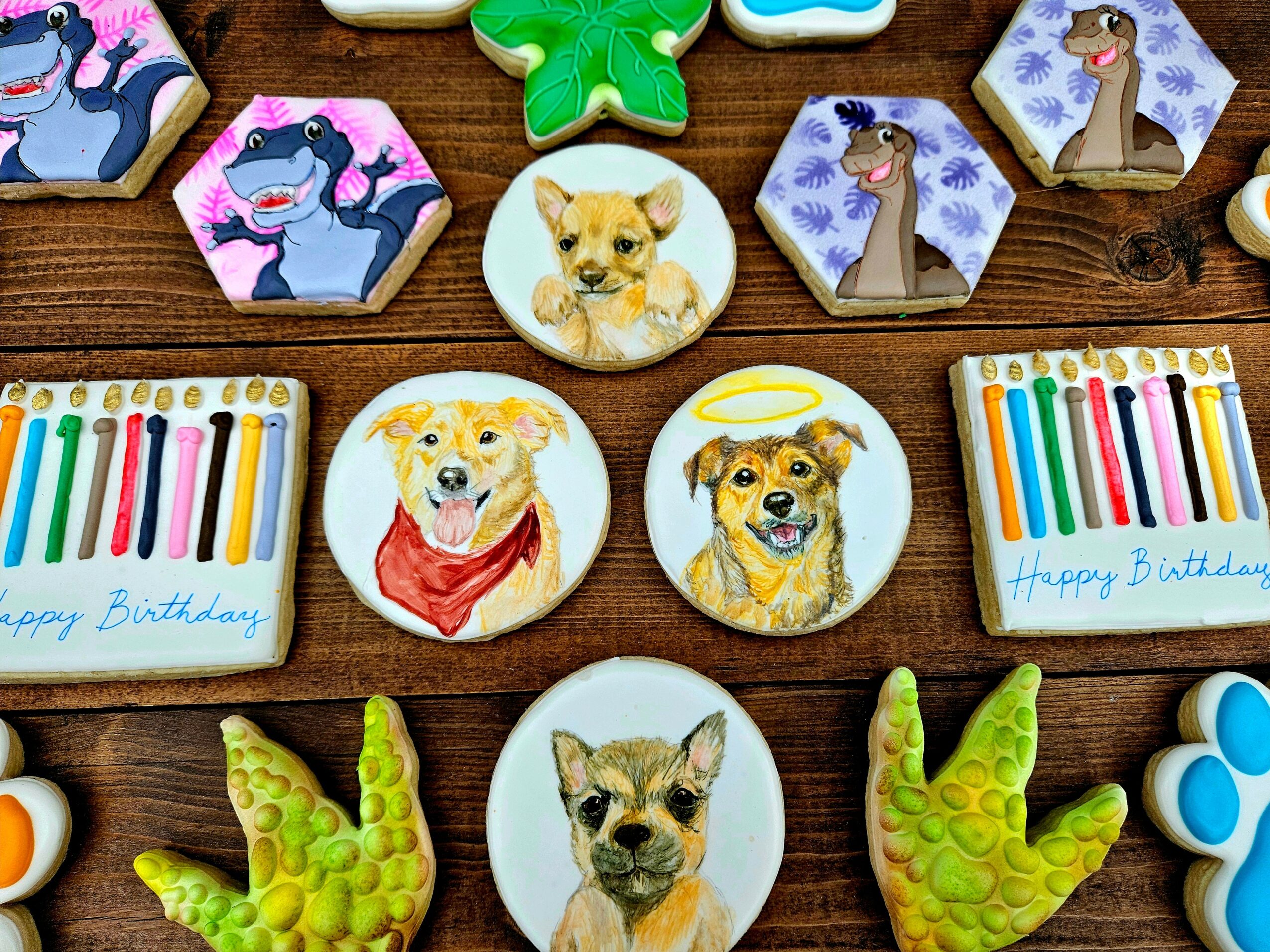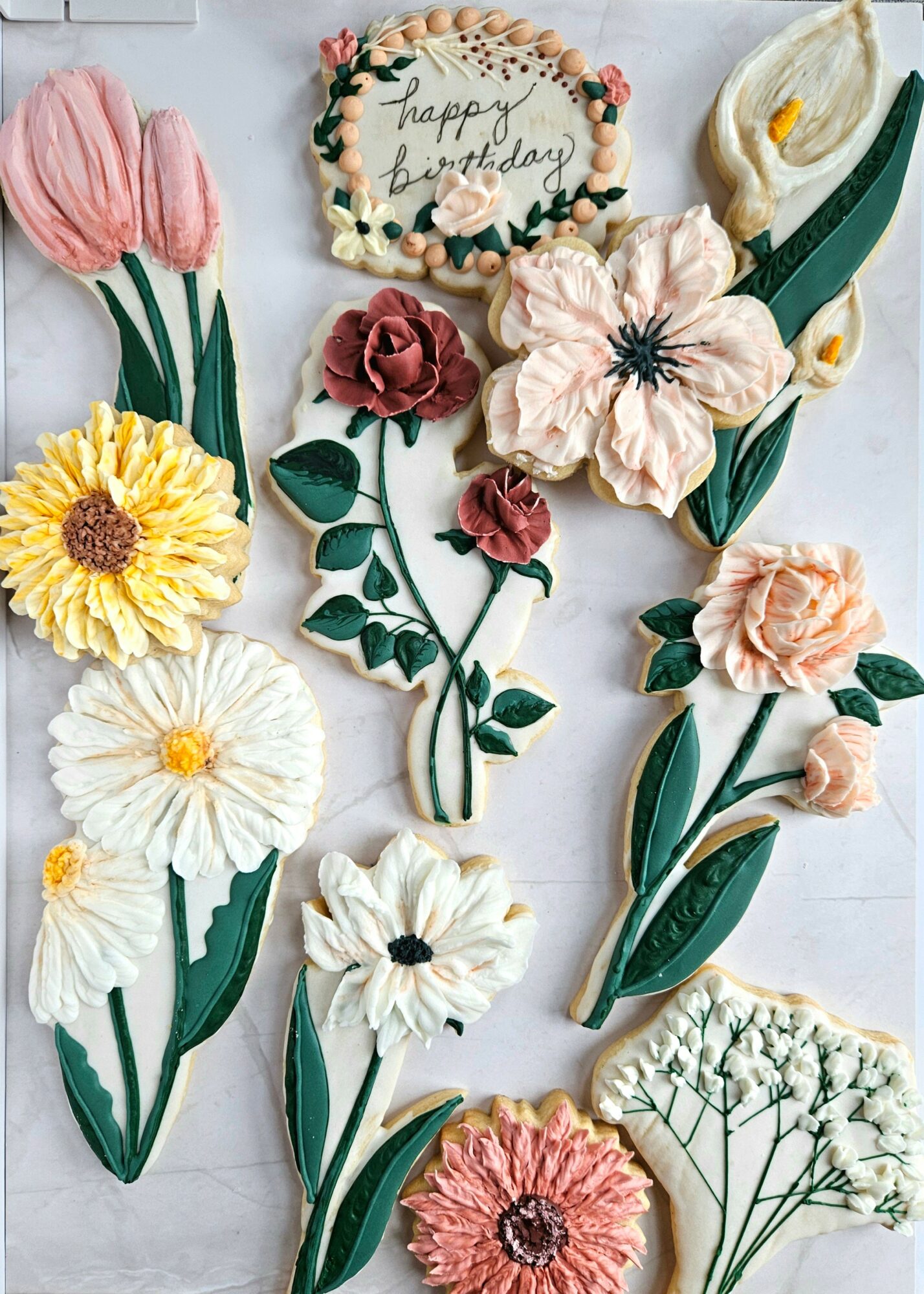 I would say my specialty I am known for is my realistic butter cream floral cakes and my sugar cookie art. I really pay attention to details and put a lot of time into figuring out and developing the techniques to achieve certain looks. Especially when a lot of “inspo” pics I recieve are AI and not made by a human hand. I love finding ways to make AI into the human hand. It seems like so much of life is the opposite of that these days. We want to make everything in the human world into something we can feed into chat gpt for answers. I want to do the opposite. I like an analog life. My husband thinks I am nuts and should just throw some icing on and be done with it because they are “just cookies” but to me they are my form of artistic expression. I have also for some reason become the go to lady for painting pet portraits on cookies.