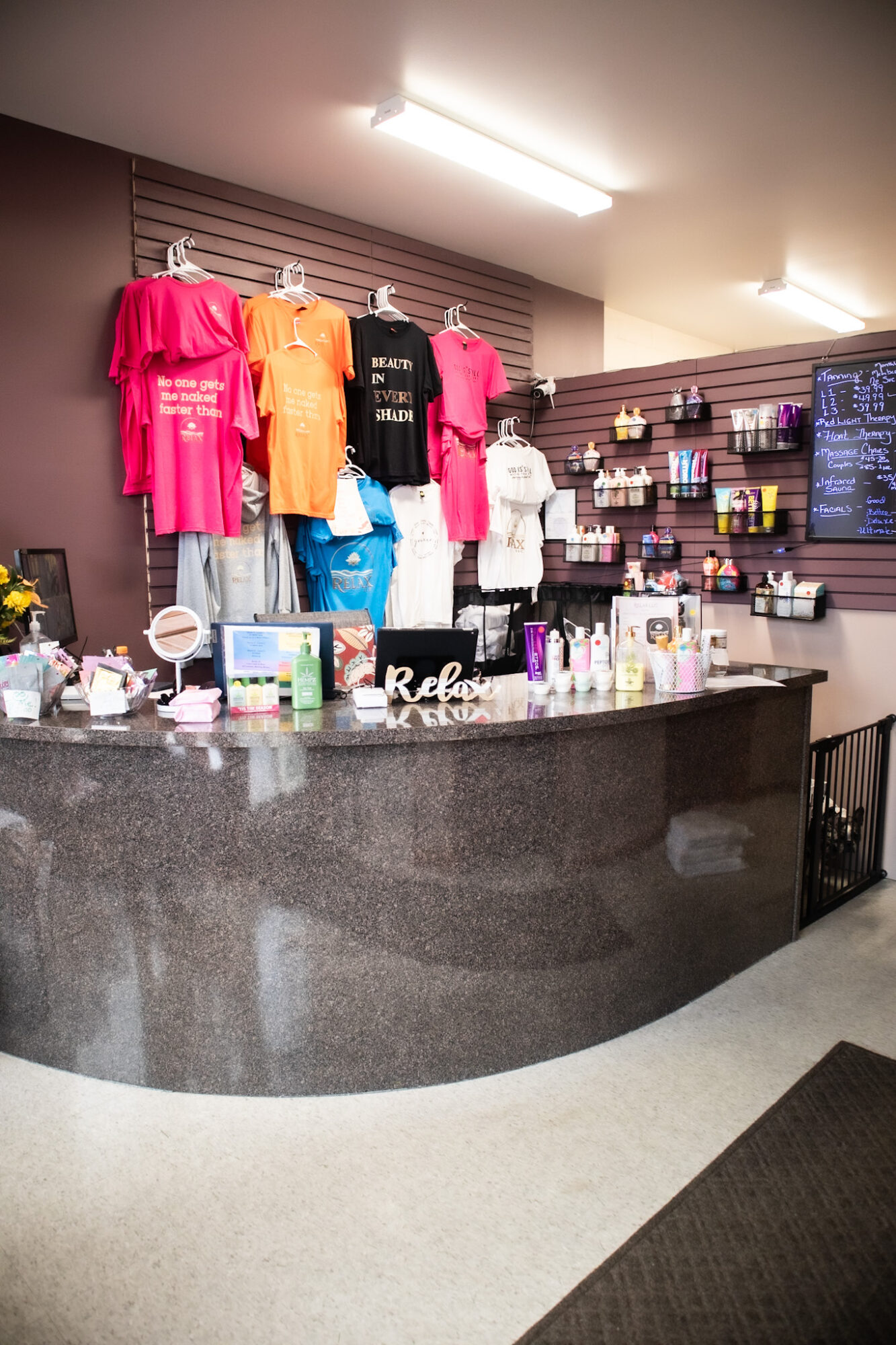 Fast forward 1 1/2 years and I bought a building, completely remodeled it, and have grown to a full-service Relaxation Destination offering Hybrid Tanning, Red Light Therapy, a Float Pod, Infrared Sauna, Anti-Gravity Massage Chairs and an extensive line of Facials! (Did I mention I also got my Esthetician license along the way?)