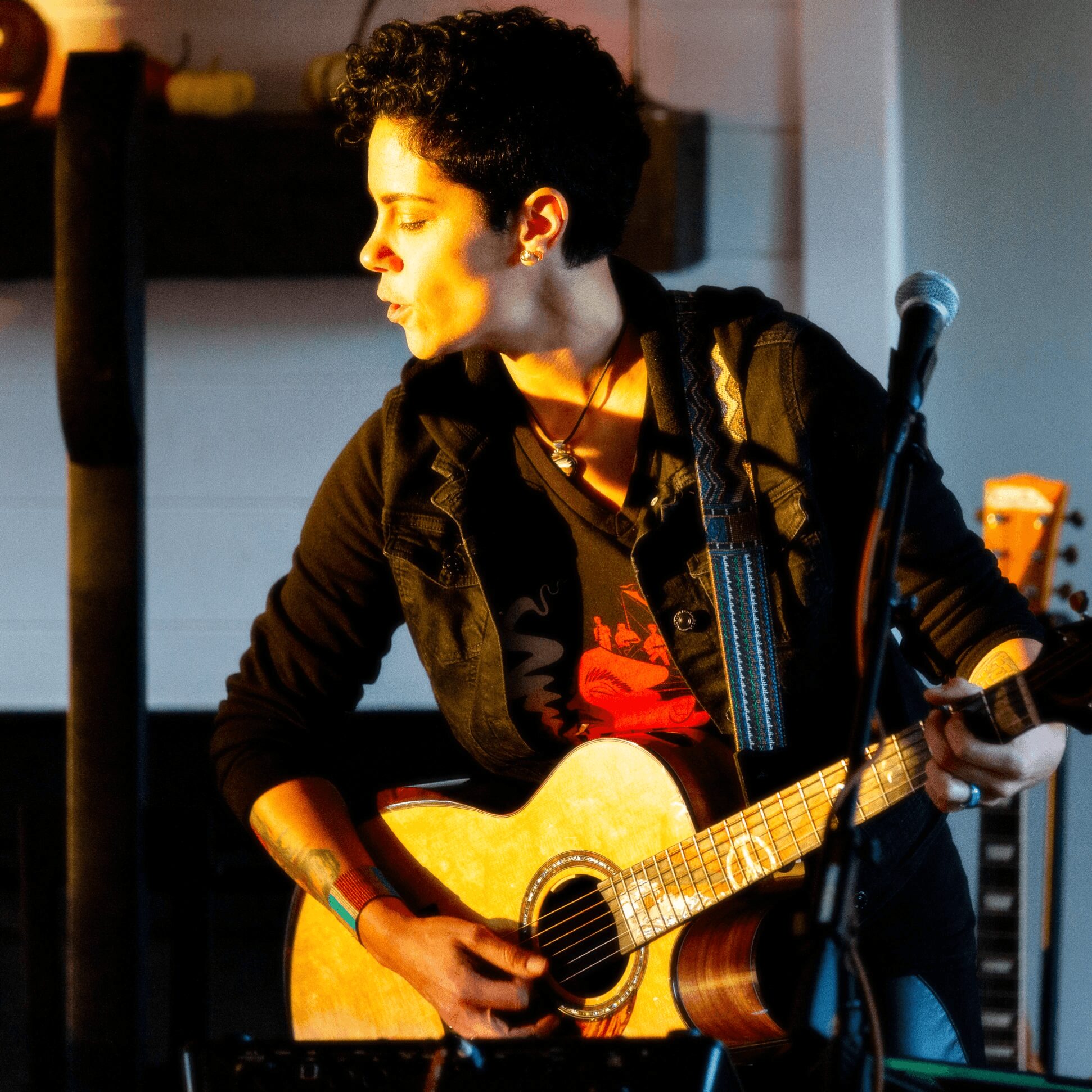 I’ve been surround by music since I was a little kid in Montreal, Canada. My dad’s side of the family were all musicians or singers, and every family get together had the family band playing all night. My grandfather was the main inspiration for everyone to take it up and was a guitar player and singer, mostly blues. I loved being around music and instruments and wanted to play them all. My mother supported music in a different way with her awesome range in genres of music she loved. From Zeppelin to Beatles, Heavy D to BB King, Santana to Loreena McKennitt plus so much more. She opened my eyes to the fact that we can like all of it at once and that blew open my world. I then got into hard rock which is still my favorite genre, and got into electric guitar. I played in a hard rock all original band in Florida when I was 19-22. Loved every minute of it and still miss that band to this day as I love performing and writing with a band.