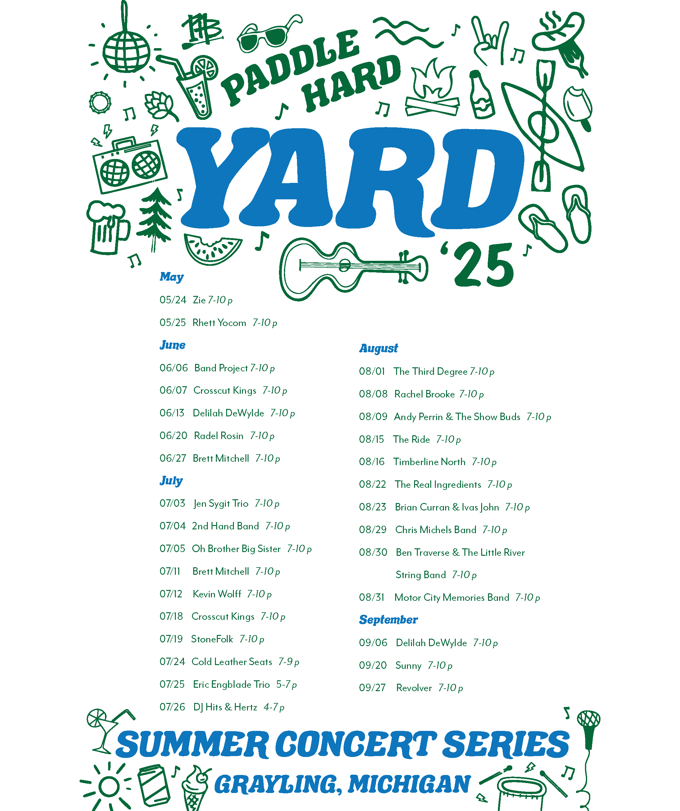 Originally the idea for the Yard came about because our restaurant patio was so busy. We created the Paddle Hard Yard as an offsite extension of our brewpub space down the block modeled after other shipping container bars- not our original never seen before idea. We wanted to create a space where people could gather with friends outside and thought the design would be unique in our area. Sometimes you just want to sit in the sun on a patio and enjoy Northern Michigan. Live music was a big part of the venue plans. We have expanded our FREE concert series to have over 20 performances in 2023 and over 30 performances each of the past 2 years (2024-25) and another 30 concert dates planned for the upcoming 2026 summer season. It has also been a great space for hosting events; we’ve held multiple weddings and receptions, baby showers, bridal showers, and many graduation parties since we opened the Yard in September 2022. We are only open seasonally during warm weather months, with most of our activities taking place between Memorial Day and shutting down by October.