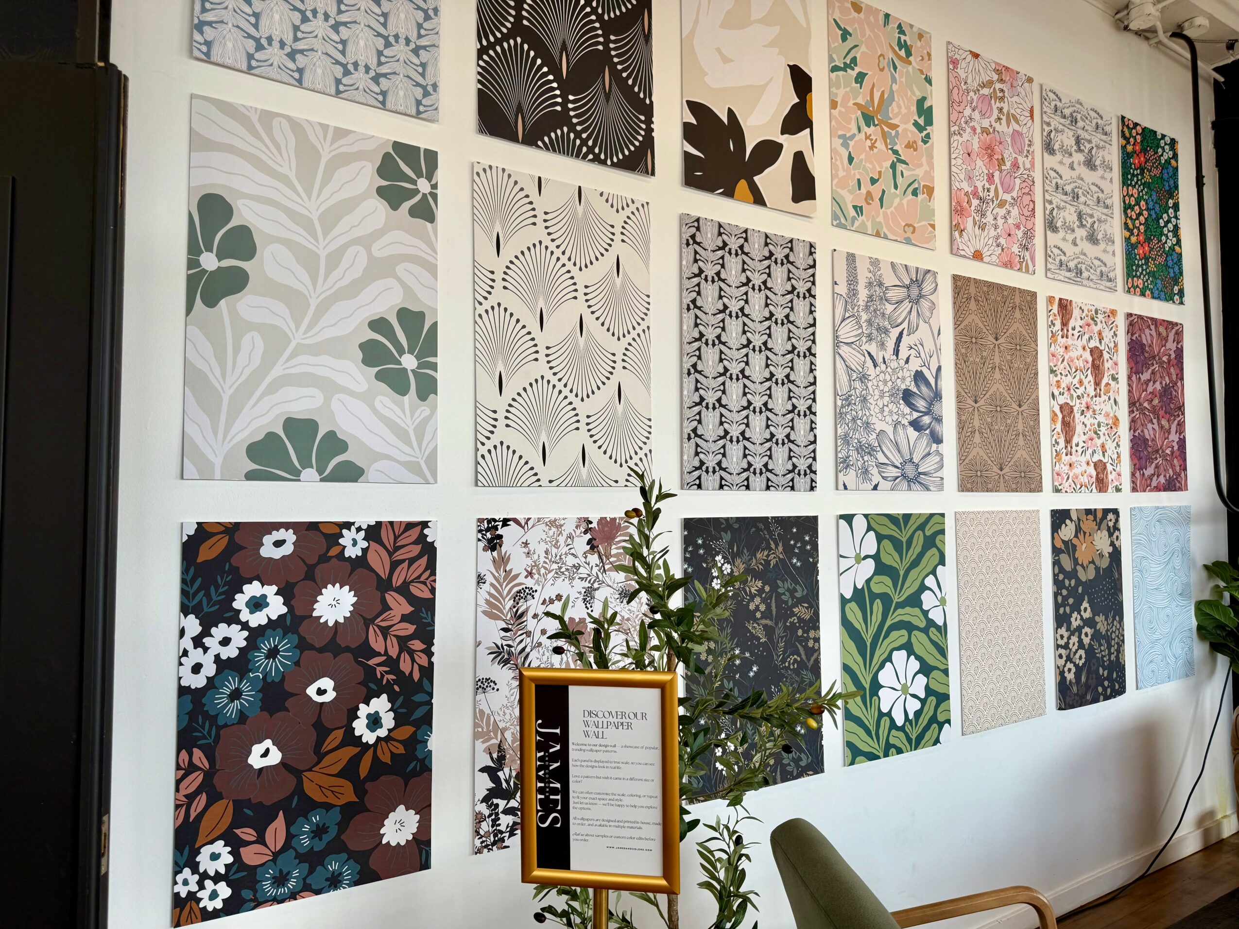 James & Colors was founded in 2021 by husband-and-wife team Rob and Kayla, combining a background in the printing industry with a shared love for design and entrepreneurship. Before starting the company, we worked closely with large-format printing and saw firsthand how much potential there was to create something more personal, flexible, and design-driven than what the wallpaper market was offering. Most options available felt mass-produced and impersonal, so we set out to build a brand that would do the opposite, made-to-order wallpaper printed from blank stock, customized for each customer and each space.
