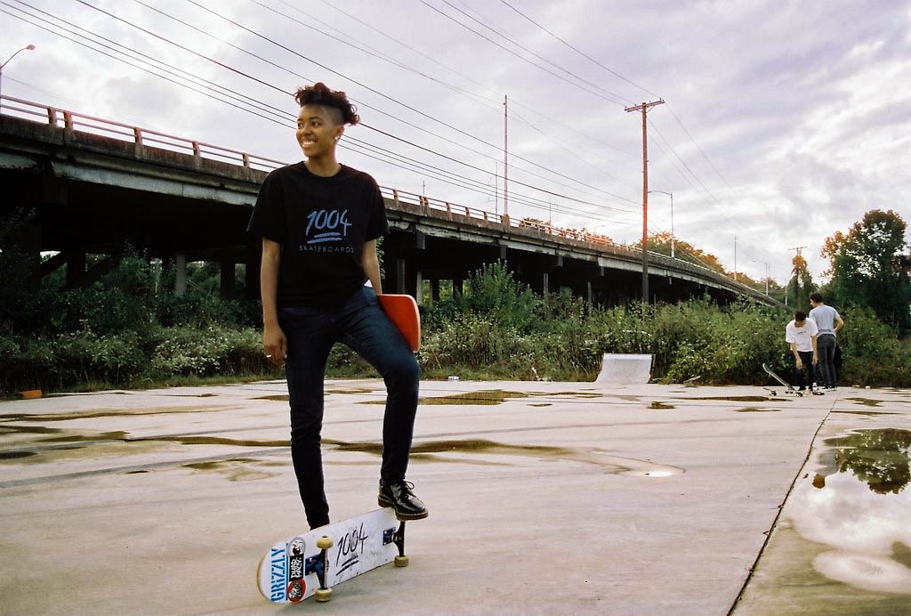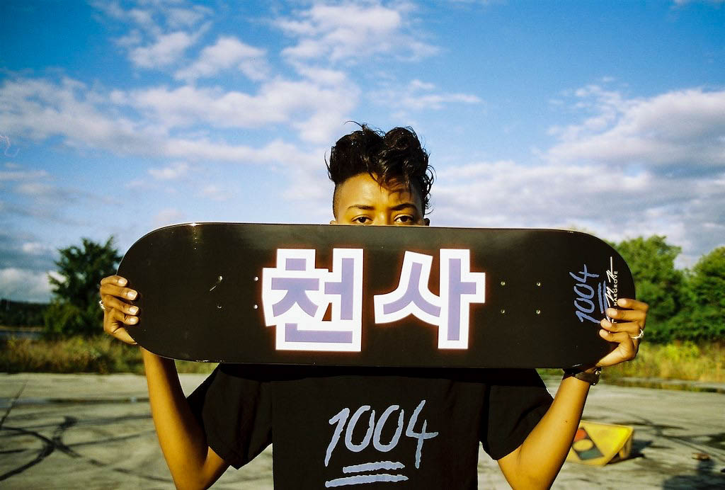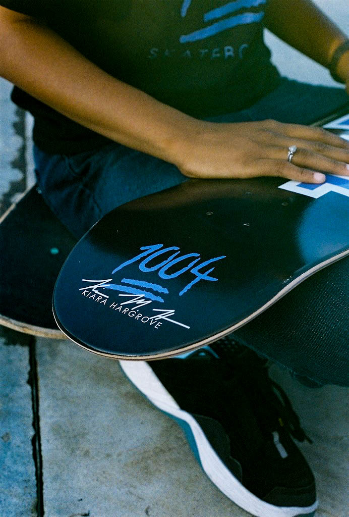 1004 Skateboards is an American skateboard company that produces skateboards and apparel. “1004” is a Korean word when written in numerical text. 천사 (chunsa) means “angel” in Korean, and I was drawn to the concept of 1004 symbolizing “angel” in the Korean language. Many people often refer to me as an angel because of my kindness and compassion. The 100 points emoji with the number 4 behind it is the official logo of my brand. The logo came to life when people noticed I frequently used the emoji on social media platforms. 1004 also represents October 4th, which is my birthday. I am known as the CEO and a professional skateboarder for 1004 Skateboards. What sets me apart is that few have achieved what I am doing: an African American woman paving the way in a male-dominated field. What I am most proud of is building a brand from the ground up. It is not easy being a leader who showcases skateboarding while managing five other individuals, marketing, and making investments. What I want others to know about my brand is that we are women-owned, skater-owned, and African American-owned. While we primarily offer skateboards and apparel, we are not limited to these products for our consumers.