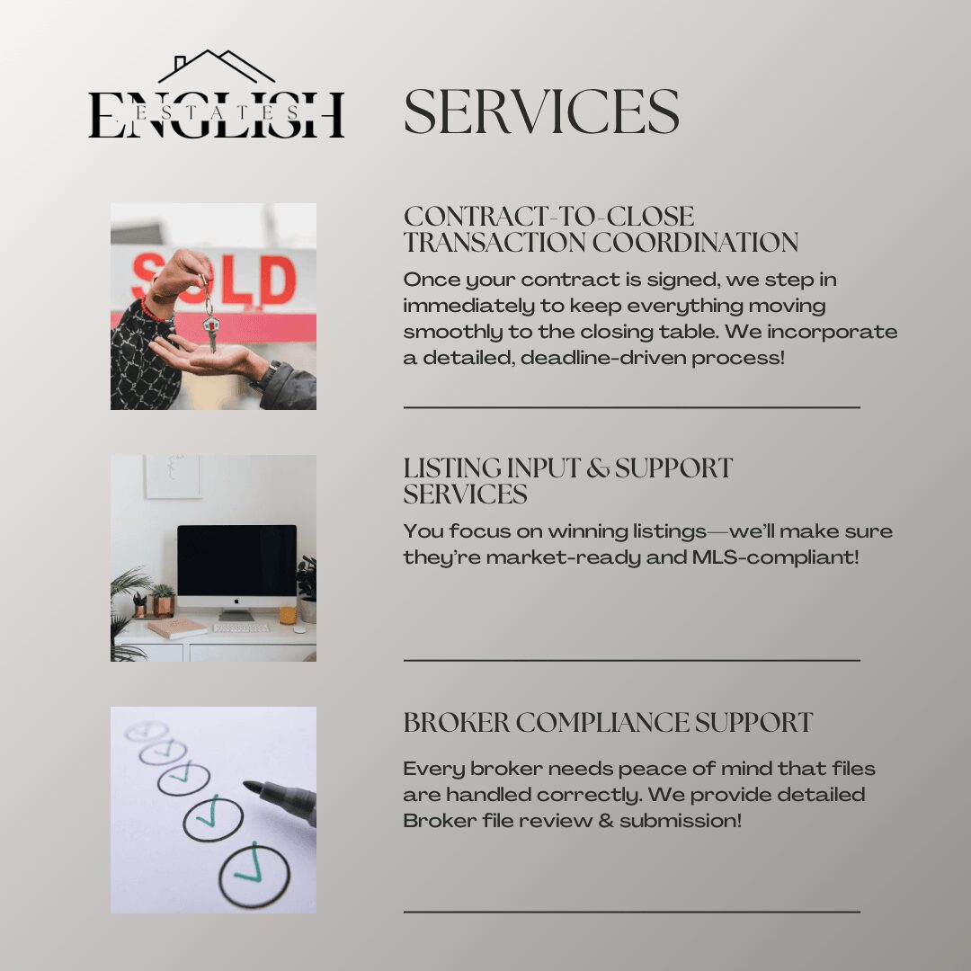 English Estates is a transaction coordinator business that is built on faith, family values, and a deep commitment to making a difference in real estate. Agents and brokers want freedom, efficiency, and impact, and that’s exactly what we provide. Let us take the paperwork, deadlines, and compliance headaches off your plate. Our goal? Help you save time, stay on track, and focus on what truly matters, serving your clients and growing your business. At English Estates, we pride ourselves on delivering top-tier customer service and unmatched professionalism. That’s why agents, both seasoned top-producers and those just starting out, choose to work with us. We bring structure, systems, and support to every transaction. Whether you’re juggling listings or trying to scale your business, we’re here to be your behind-the-scenes powerhouse. Every listing input, compliance check, or contract-to-close step we handle is one less thing for you to do. We’re here to serve Michigan agents and brokers with purpose and precision, one smooth, life-changing transaction at a time. We offer statewide service, whether you’re in Detroit, Grand Rapids, Lansing or anywhere in between, we’re your go to Michigan transaction partner.