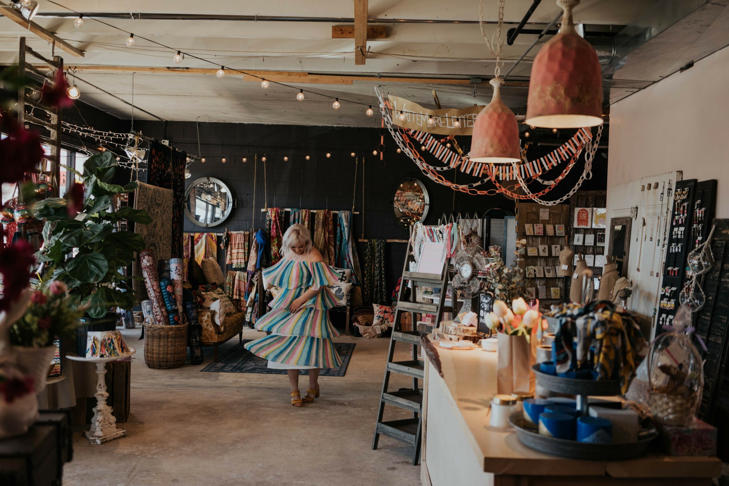 Whimsical Wit started as a little home and gift shop in a tiny traveling camper, but it has grown into more than I could have ever imagined. Since opening the first brick-and-mortar, we have been able to offer creative workshops and classes, community events, small concerts, and our newly founded Whimsical Women’s group! Personally, I think that the products we carry really set us apart. I really pride myself of finding products that are not only beautiful but unique and ethically sourced. But what I am truly the most proud of is the atmosphere that we created in the shops. I love watching people come in, slow down, and relax. You really do feel a sense of calm when you walk through the doors. It’s a very magical space!